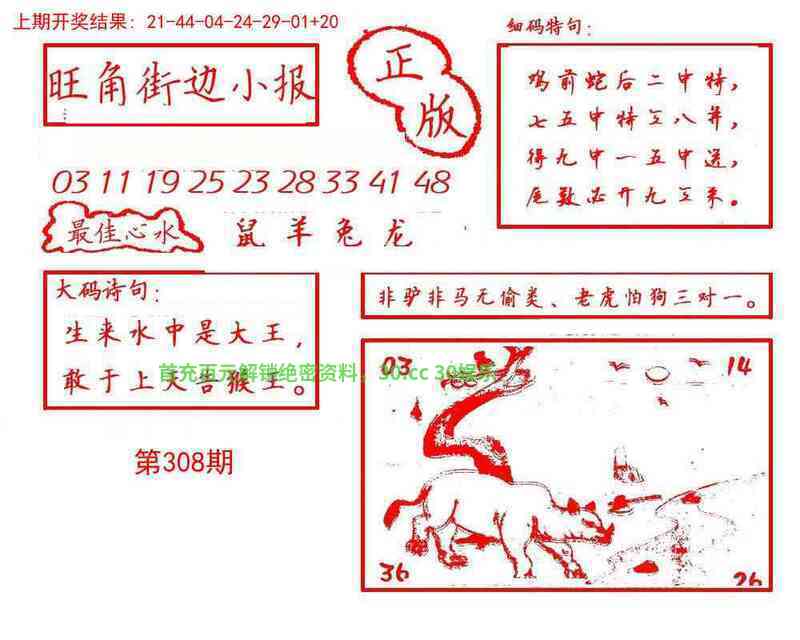 | 307期 | 鸡 | 红波双 | 5尾 | 开狗20 |
